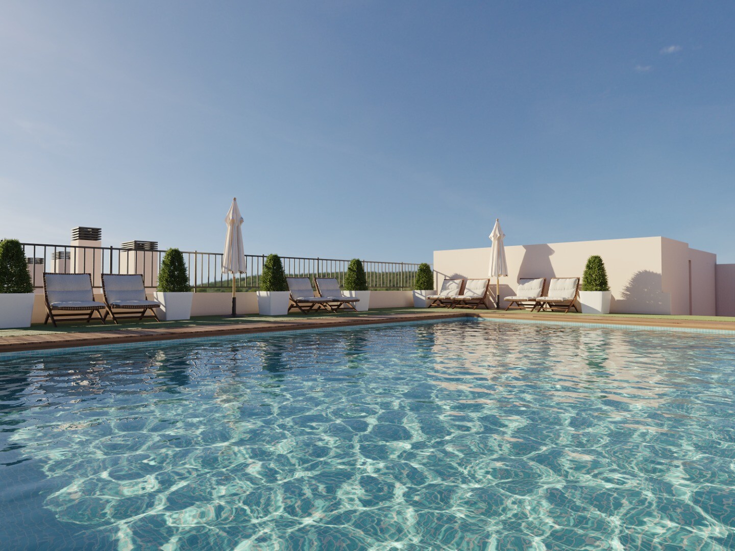 En av höjdpunkterna är den gemensamma poolen på taket, perfekt för avkoppling och för att njuta av det medelhavsklimatet med utsikt över staden.