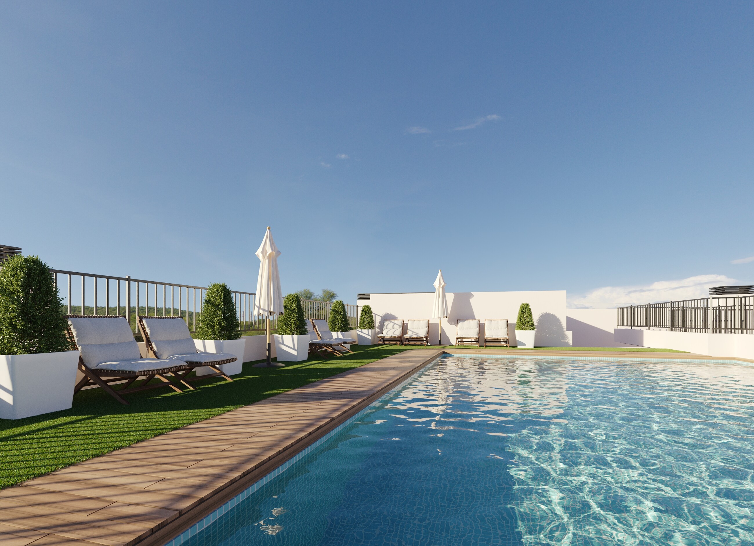 En av höjdpunkterna är den gemensamma poolen på taket, perfekt för avkoppling och för att njuta av det medelhavsklimatet med utsikt över staden.